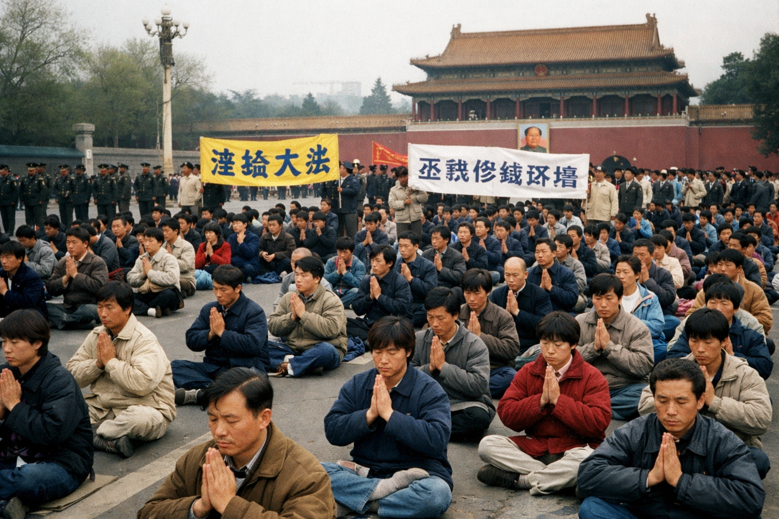 그들은 아무런 플래카드도 들지 않았다. 구호도 외치지 않았다. 조용히 서서 정부와의 대화를 기다렸다. 요구는 하나였다. 톈진에서 불법 체포된 수련자들을 석방하고, 파룬궁에 대한 탄압을 중단해 달라는 것이었다. 주룽지 총리가 나와 대화했고, 그들은 질서 있게 해산했다. 어떠한 충돌도 없었다.
