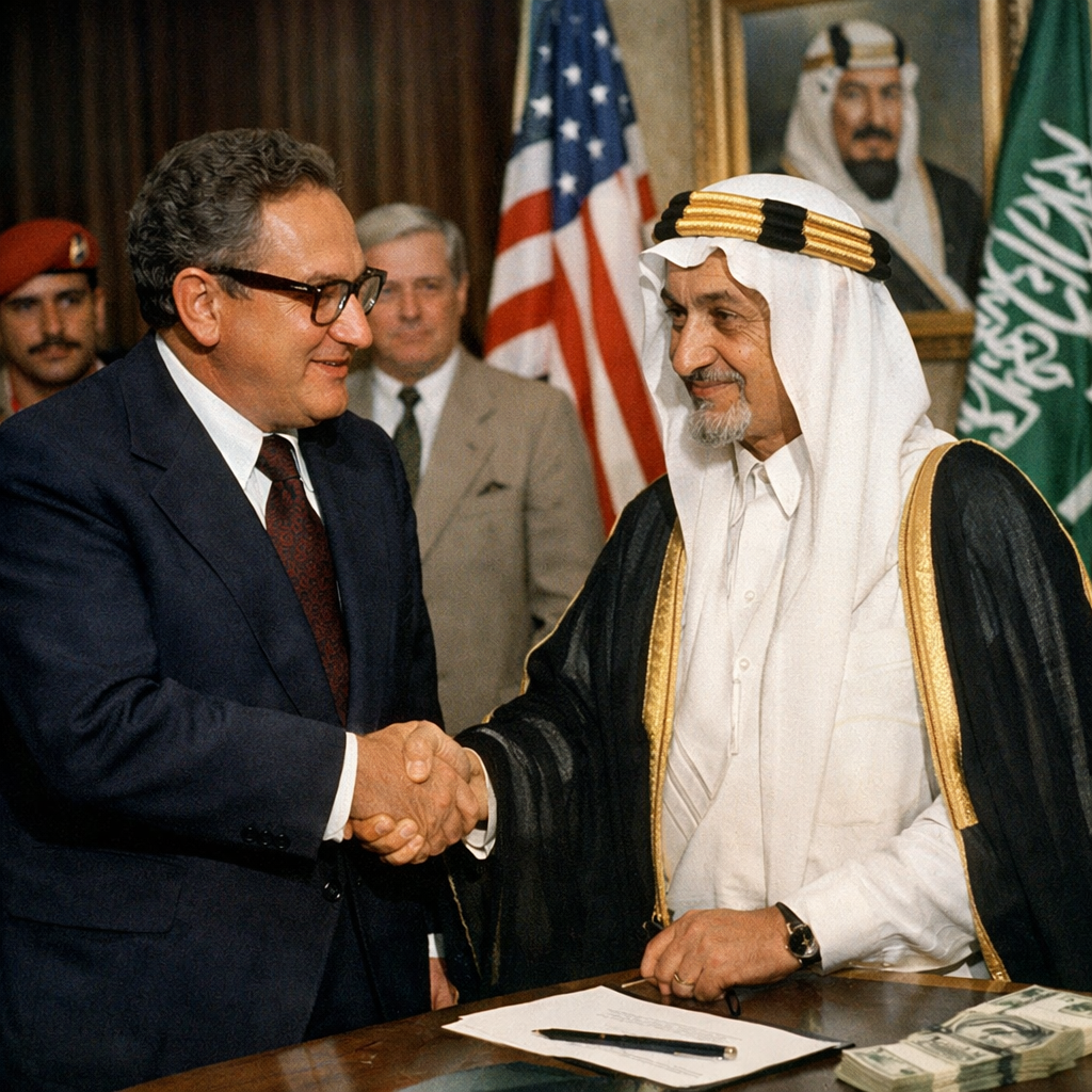 1974년, 미국과 사우디아라비아가 역사를 바꿀 비밀 합의를 맺었다. 내용은 간명했다. 사우디가 원유 수출 대금을 오직 달러로만 받는다. 그 대신 미국이 사우디 왕가의 안보를 보장한다. OPEC의 다른 나라들도 같은 체제에 편입되었다. 이것이 '페트로달러(Petrodollar)' 체제의 탄생이었다.